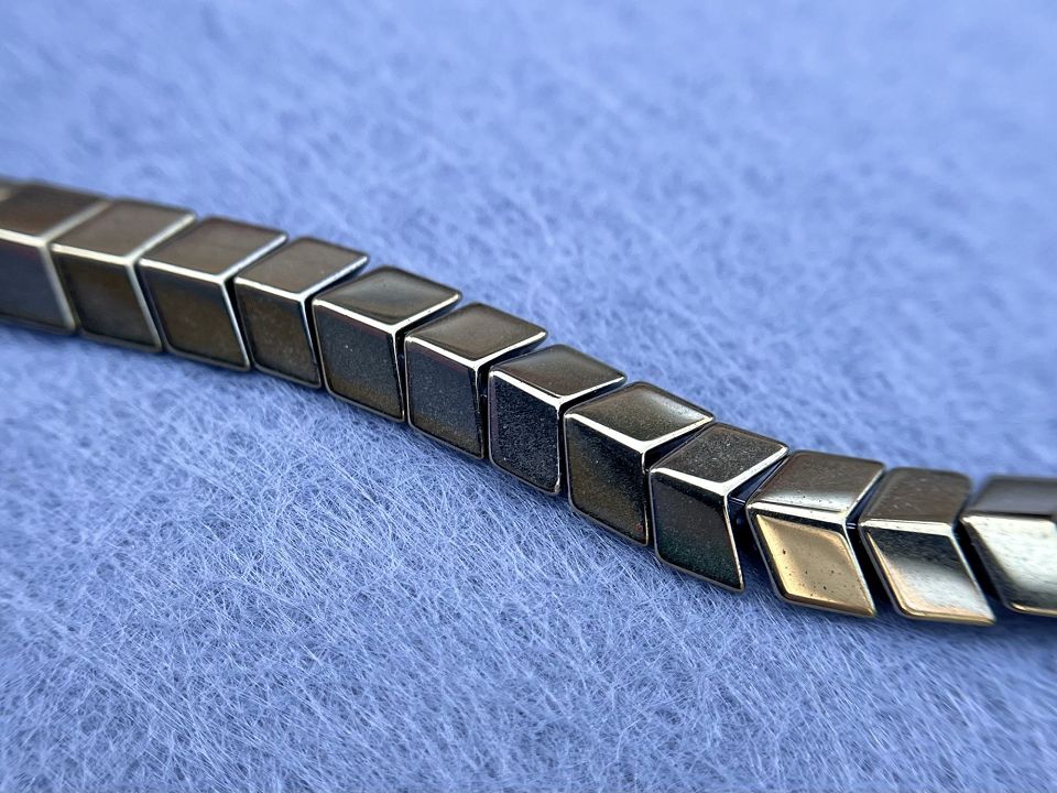Гематит-натуральний, гладкий. Розмір намистини: 5*6мм, товщина: 3мм. Кількість намистин на нитці: 115 (+-2шт). Отвір: 1мм. Ціна за нитку (без замку). Довжина нитки: 41 см