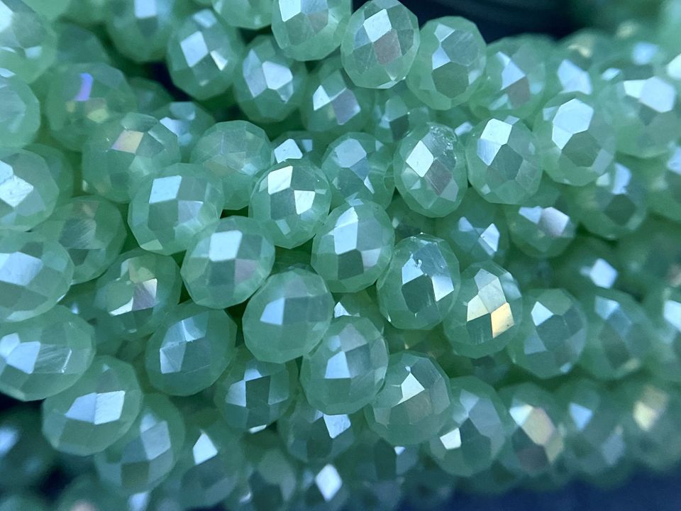 Кришталеві намистини, грановані. Розмір: 6*5мм, отвір: 1мм. Форма: рондель, сфера. У нитці: 90+-3шт. Ціна за 10 ниток.