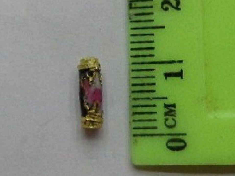 Намистина металева у вигляді трубочки виготовлена в техніці Клуазоне з елементами емалі. Висота: 10 мм, отвір близько 2 мм. Ціна за 1 шт