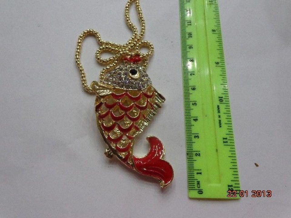 Кулон підвіска Золота рибка на ланцюзі в стразах.