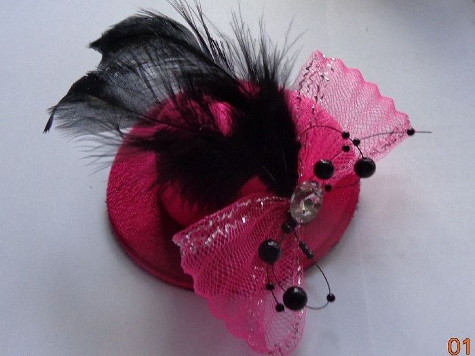 Прикраса для волосся, капелюшок з шпилькою, діаметром приблизно 10 см. прикрашена бантом, пір'ям і намистинками. Ціна за 1шт.