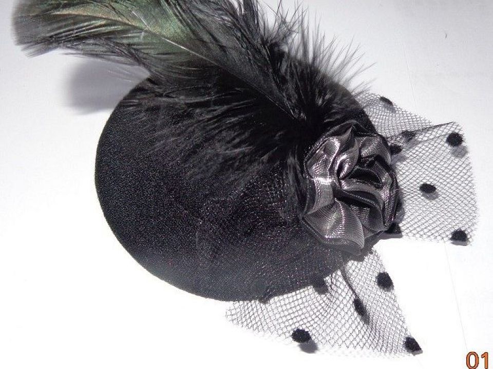 Прикраса для волосся, капелюшок з шпилькою, діаметром приблизно 10 см. Прикрашена квіткою, бантом і пір'ям. Ціна за 1шт.