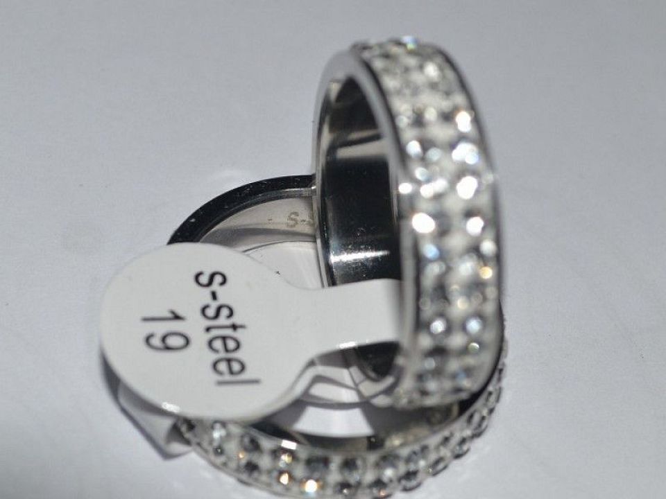Кільце на палець з нержавіючої сталі в стразах. Колір метала: сталевий, колір білий з прозорими стразами. Розмір: 18
