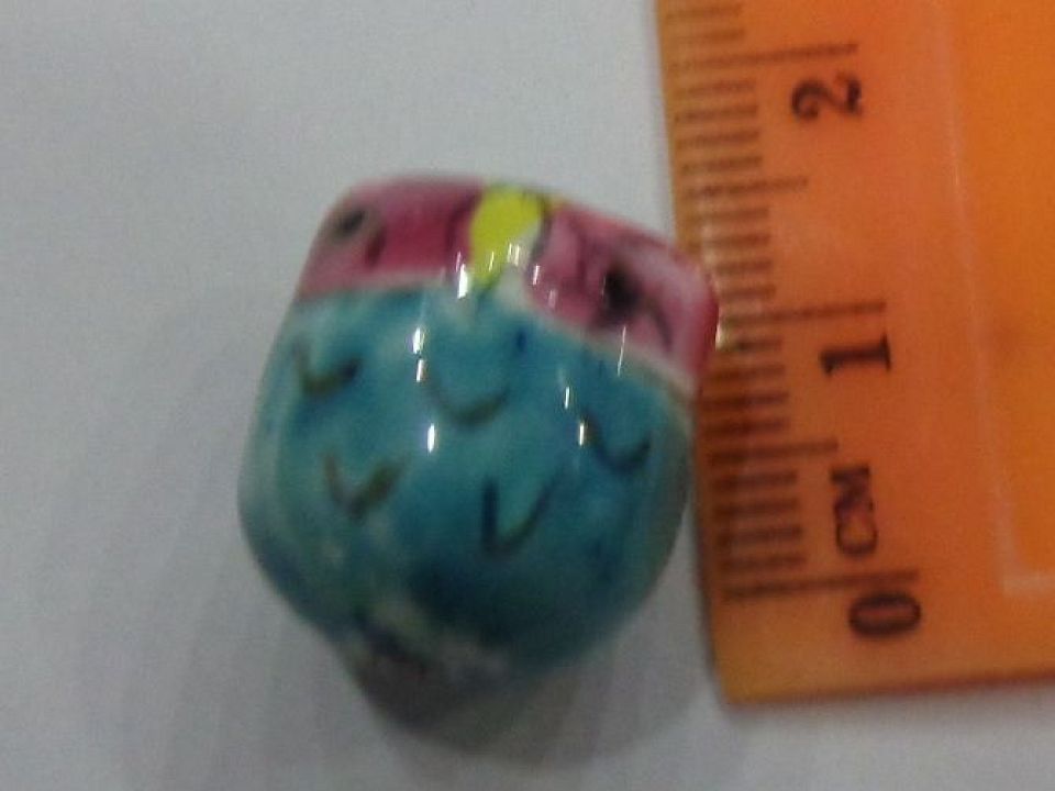Фарфорова намистинка ручної роботи у вигляді сови з розписом по глазурі. Діаметр отвору: близько 2 мм. Ціна за 1 намистину.