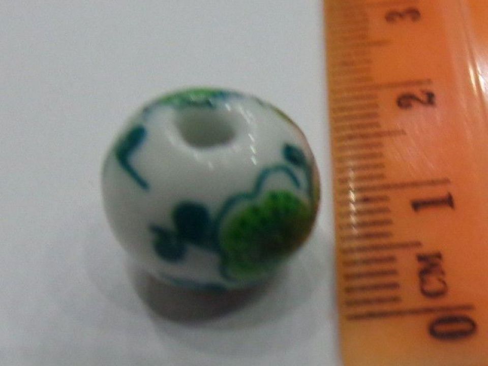 порцелянова намистина-кругла, ручної роботи з традиційним китайським розписом по глазурі. Розмір 10 мм, діаметр отвору: близько 2 мм.