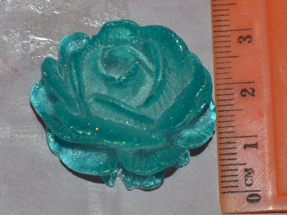 Пластиковий кабошон вигляді квітки, має плоске (рівне) підстава. Розмір троянди 3 см, підстава 2.5см. Використовується для прикрас бантів, шпильок і інших різних виробів