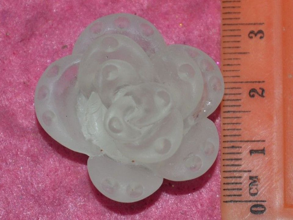 Пластиковый кабошон виде цветка, имеет плоское (ровное) основание. Размер розы 3см, основание 2см. Используется для украшений бантов, заколок и других различных поделок