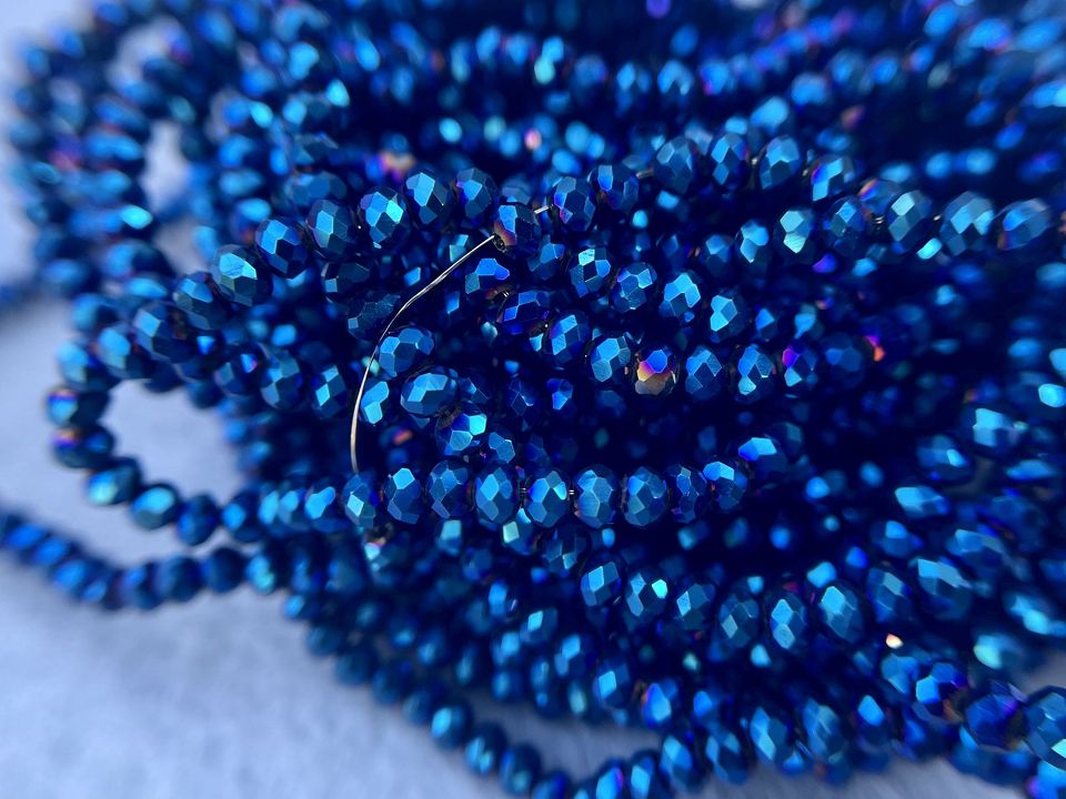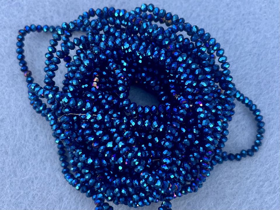 Кришталеві намистини, грановані. Розмір: 2*3мм, отвір: 1 мм. Форма: рондель, сфера. У нитці: 160+-3шт. Ціна за 1 нитку.