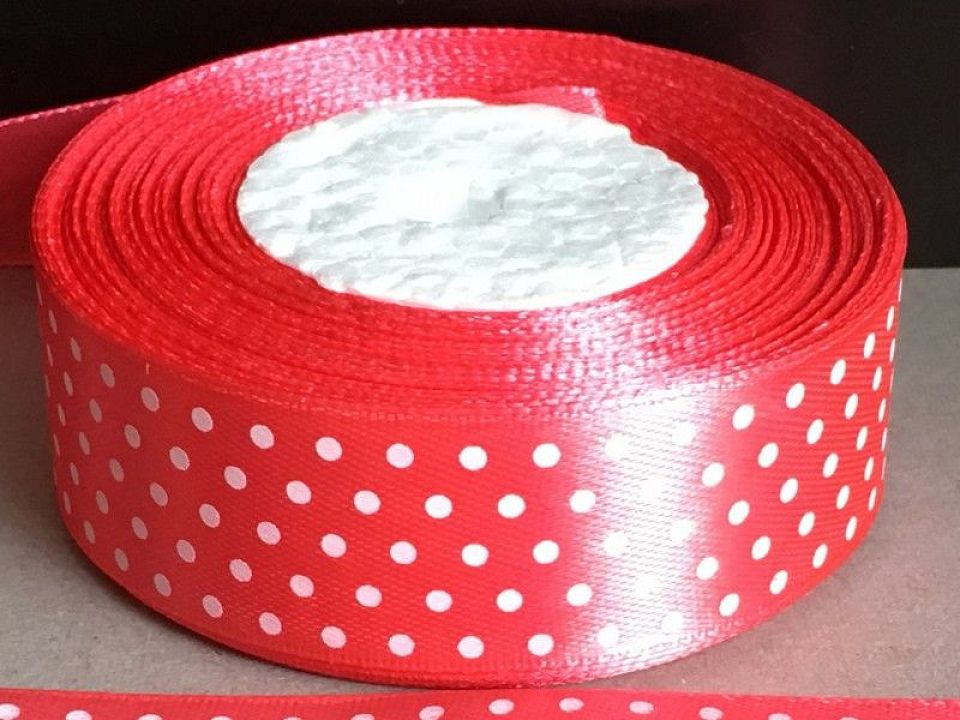 Стрічка атласна в горошок, ширина 2.5см. В мотку ~ 23 метра. Стрічка атласна - це стрічка, яка зроблена атласним переплетенням з віскозного шовку. Зазвичай її застосовують для прикраси, оздоблення одягу, вишивання стрічками, плетіння стрічками і т.д. Ціна вказана за 1 моток. Виробництво - Китай.