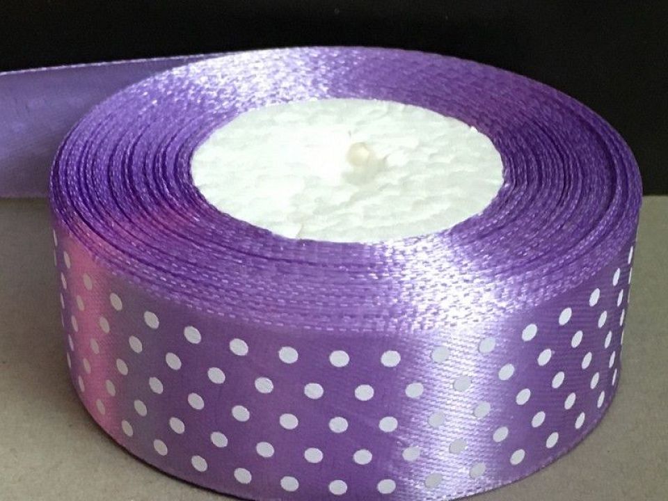 Стрічка атласна в горошок, ширина 2.5см. В мотку ~ 23 метра. Стрічка атласна - це стрічка, яка зроблена атласним переплетенням з віскозного шовку. Зазвичай її застосовують для прикраси, оздоблення одягу, вишивання стрічками, плетіння стрічками і т.д. Ціна вказана за 1 моток. Виробництво - Китай.