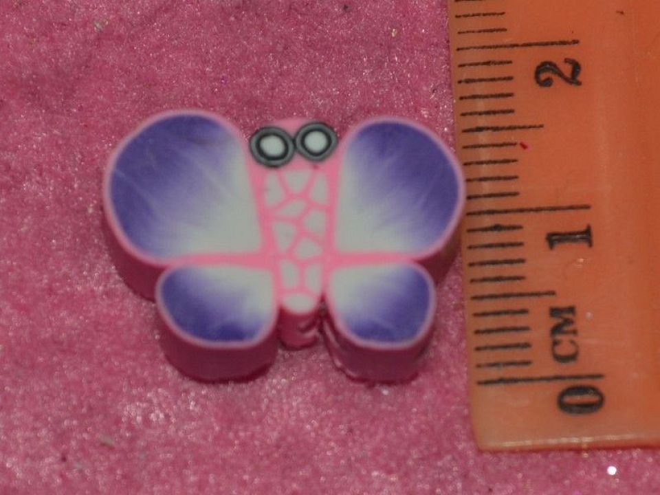 Намистини з полімерної глини. Форма: метелики. Розмір намистини 2 * 1.5см, отвір: 1 * 1.5 мм. Ціна вказана за 1 шт. Намистину можна нанизати на основу для браслетів або кольє. Так як це намистини ручної роботи, то розмір може варіюватися: + -1 мм