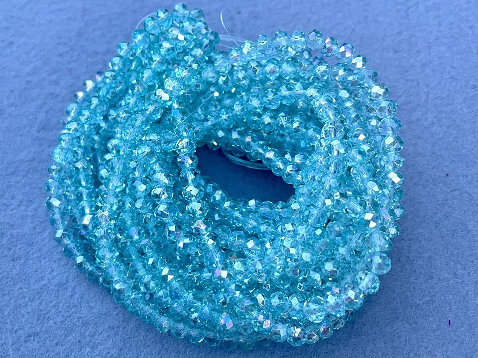 Кришталеві намистини, грановані. Розмір: 6*5мм, отвір: 1мм. Форма: рондель, сфера. У нитці: 90+-3шт. Ціна за 10 ниток.