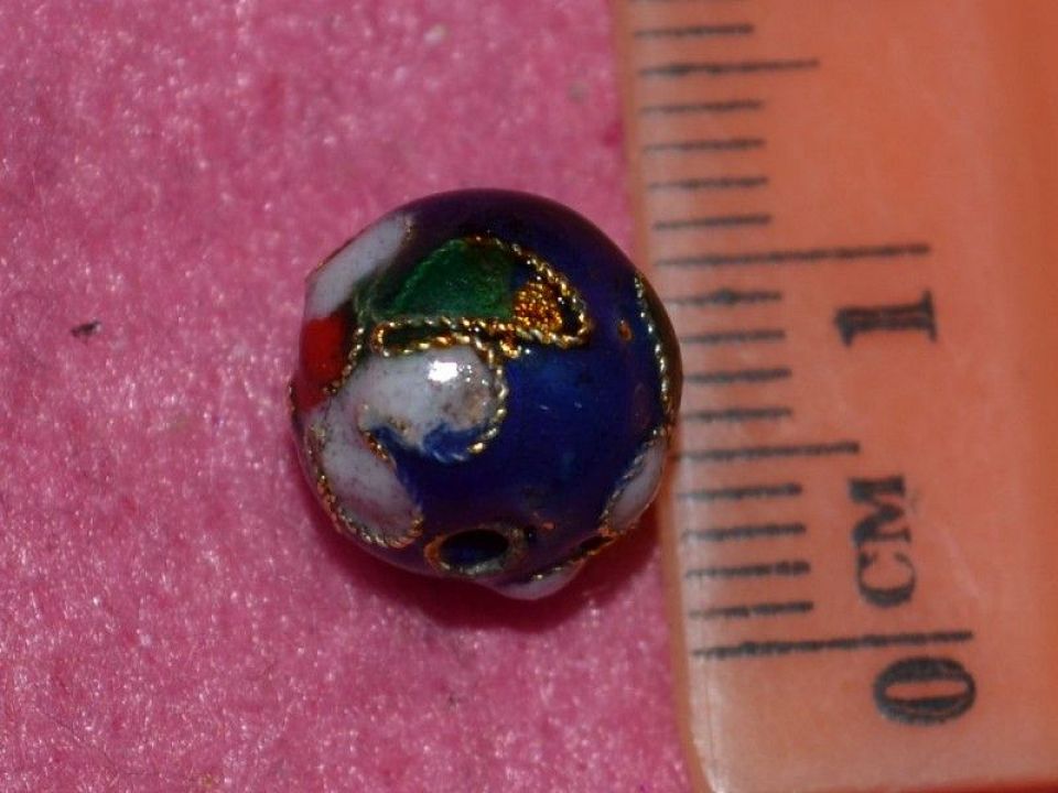 Намистина металева виготовлена в техніці Клуазоне з елементами емалі. Діаметр 10 мм, отвір близько 2 мм. Ціна за 1 шт