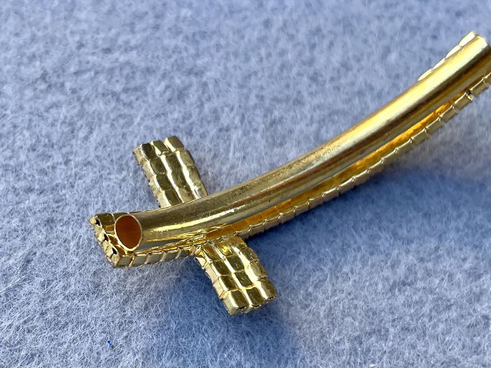 Розділювач-трубочка для біжутерії. Колір золото. Розміри: 2,5 * 5,3 см, отвір: 3мм. Ціна за 1 штуку.