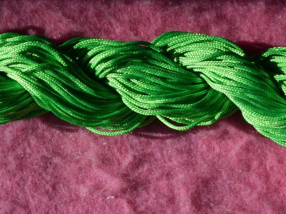 Шнур синтетичний (капронову ще називають нейлоновим), товщина -1,5мм. Має високу міцність і стійкість до тертя. Плавиться якщо його підпалити .Такий шнурок часто використовують для плетіння браслетів Шамбала, і інших прикрас в техніці макраме. Ціна за моток-25 метрів.