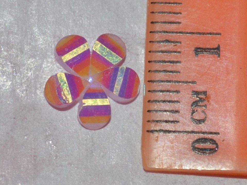 Кабошон скляні - 10мм. Форма квіточки з плоским підставою. У поняття "кабошон" входить будь-який декоративний елемент, що має плоску "підошву" якої він приклеюється або кріпиться до основи. Це може бути декоративний елемент зі скла, пластику у формі кола або овалу, квіти зі смоли, акрилу, полімерної глини. Широко використовується виготовленні кулонів, медальйонів, брелків, кілець, сережок, шпильок, так само підходить для прикраси листівок.