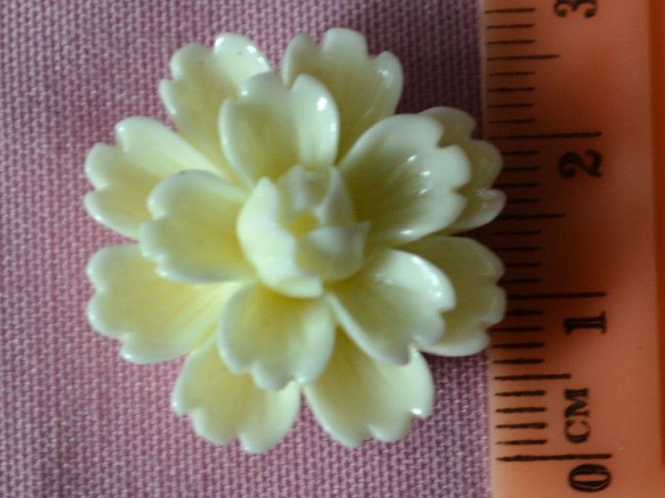 Пластиковий кабошон вигляді квітки, має плоске (рівне) підстава. Розмір троянди 3 см, підстава 2см. Використовується для прикрас бантів, шпильок і інших різних виробів