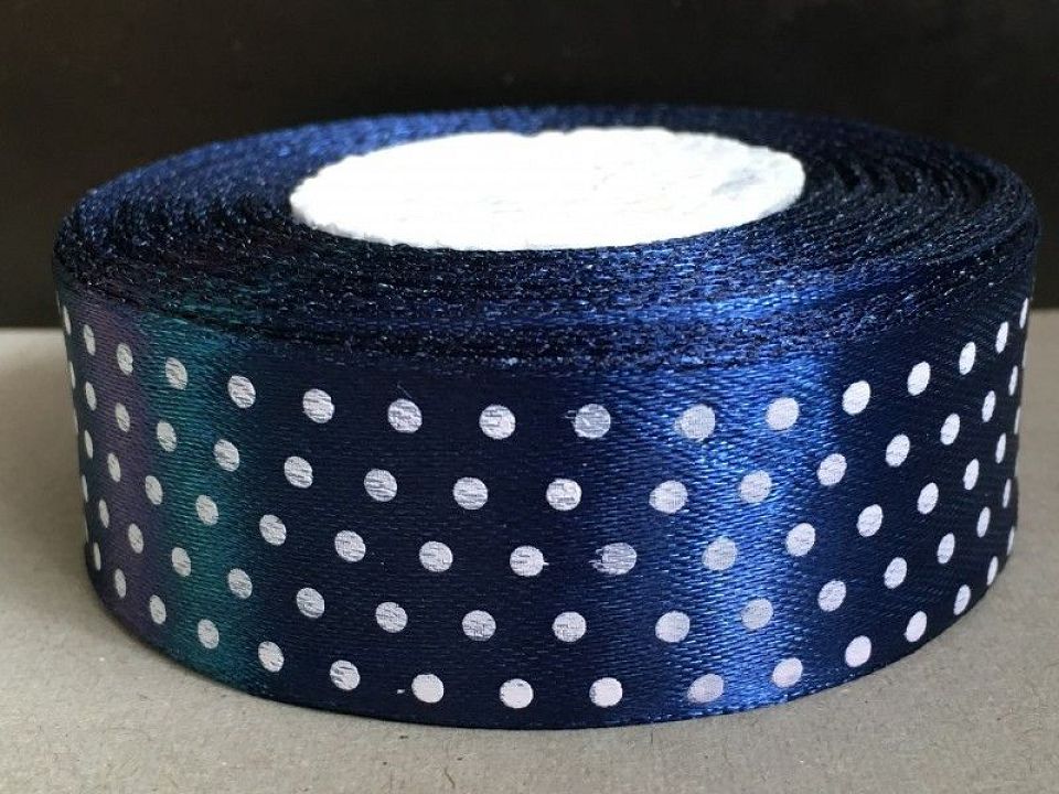 Стрічка атласна в горошок, ширина 2.5см. В мотку ~ 23 метра. Стрічка атласна - це стрічка, яка зроблена атласним переплетенням з віскозного шовку. Зазвичай її застосовують для прикраси, оздоблення одягу, вишивання стрічками, плетіння стрічками і т.д. Ціна вказана за 1 моток. Виробництво - Китай.