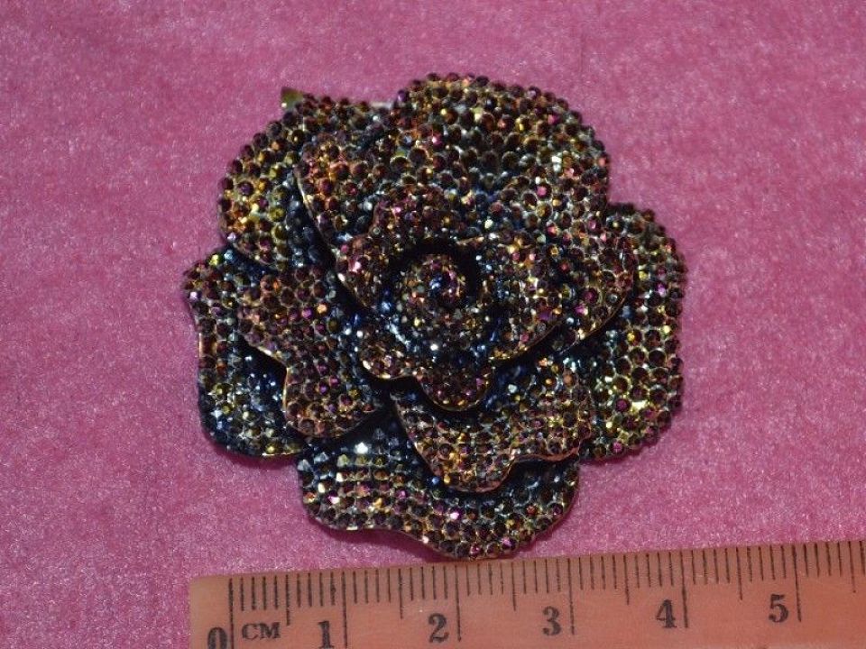 Пластиковий кабошон вигляді троянди, усипаний каменями має плоске (рівне) підстава. Розмір троянди 4см, підстава 2.5см.