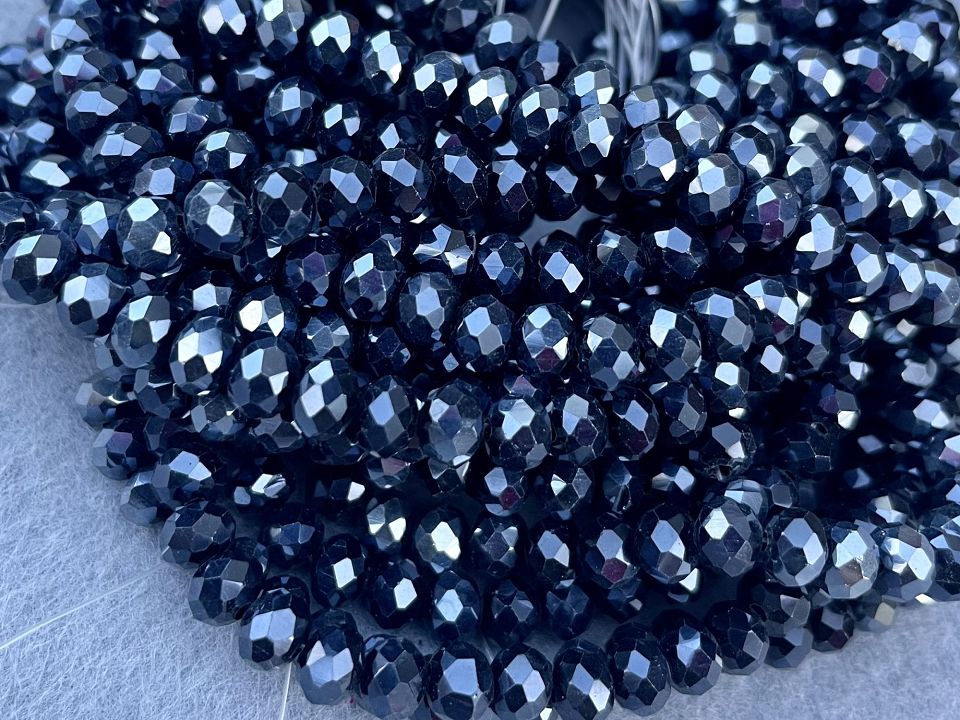 Кришталеві намистини, грановані. Розмір: 6*5мм, отвір: 1мм. Форма: рондель, сфера. У нитці: 90+-3шт. Ціна за 1 нитку.