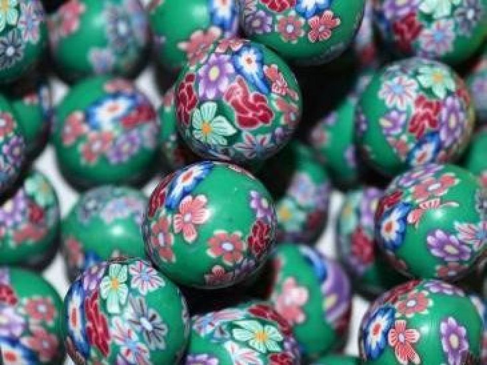Намистини з полімерної глини. Діаметр намистини: 18мм, отвір: 1.5-2мм. Ціна вказана за нитку: 18шт. Так як це намистини ручної роботи, то розмір може варіюватися + -1 мм