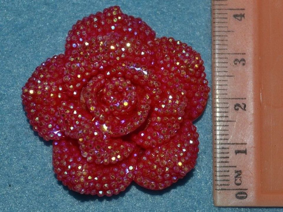 Пластиковий кабошон вигляді троянди, усипаний каменями має плоске (рівне) підстава. Розмір троянди 4см, підстава 2.5см.