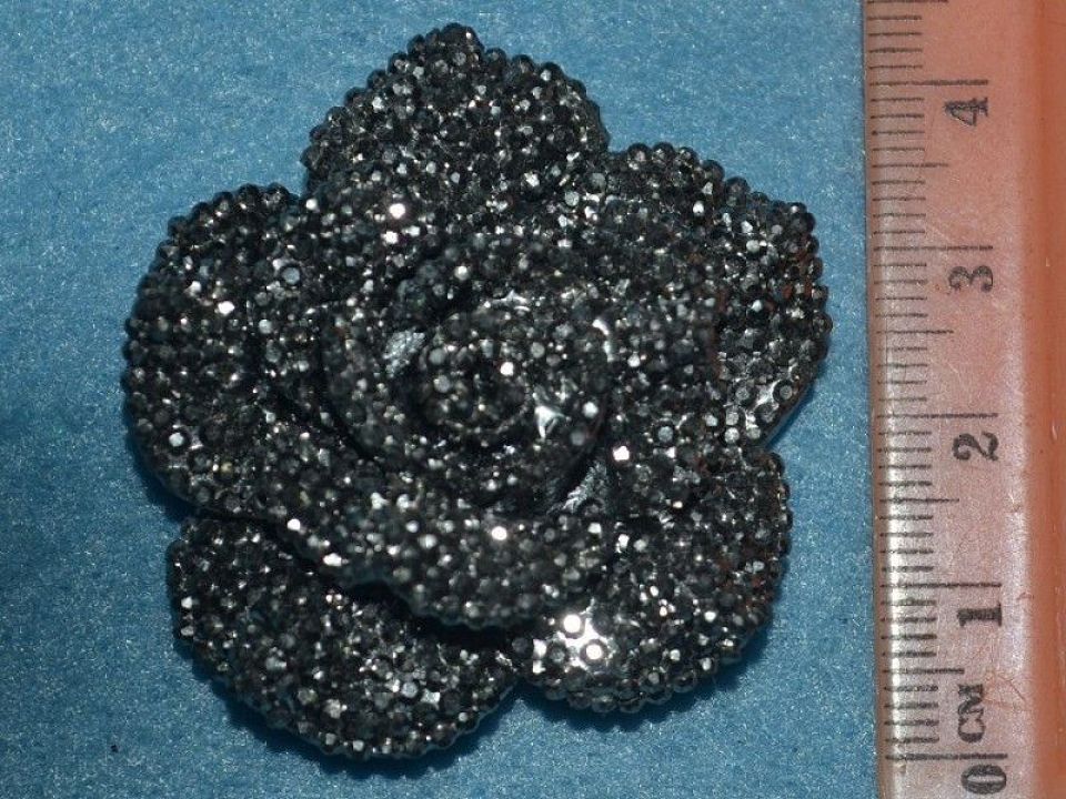 Пластиковий кабошон вигляді троянди, усипаний каменями має плоске (рівне) підстава. Розмір троянди 4см, підстава 2.5см.