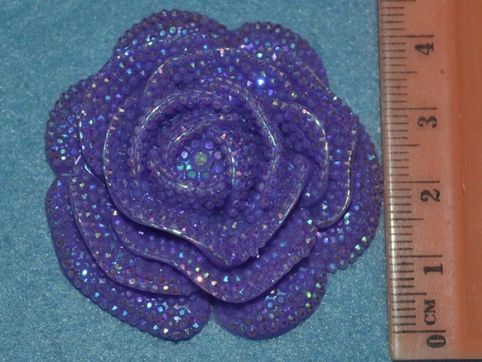 Пластиковий кабошон вигляді троянди, усипаний каменями має плоске (рівне) підстава. Розмір троянди 4см, підстава 2.5см. Використовується для прикрас бантів, шпильок і інших різних виробів.