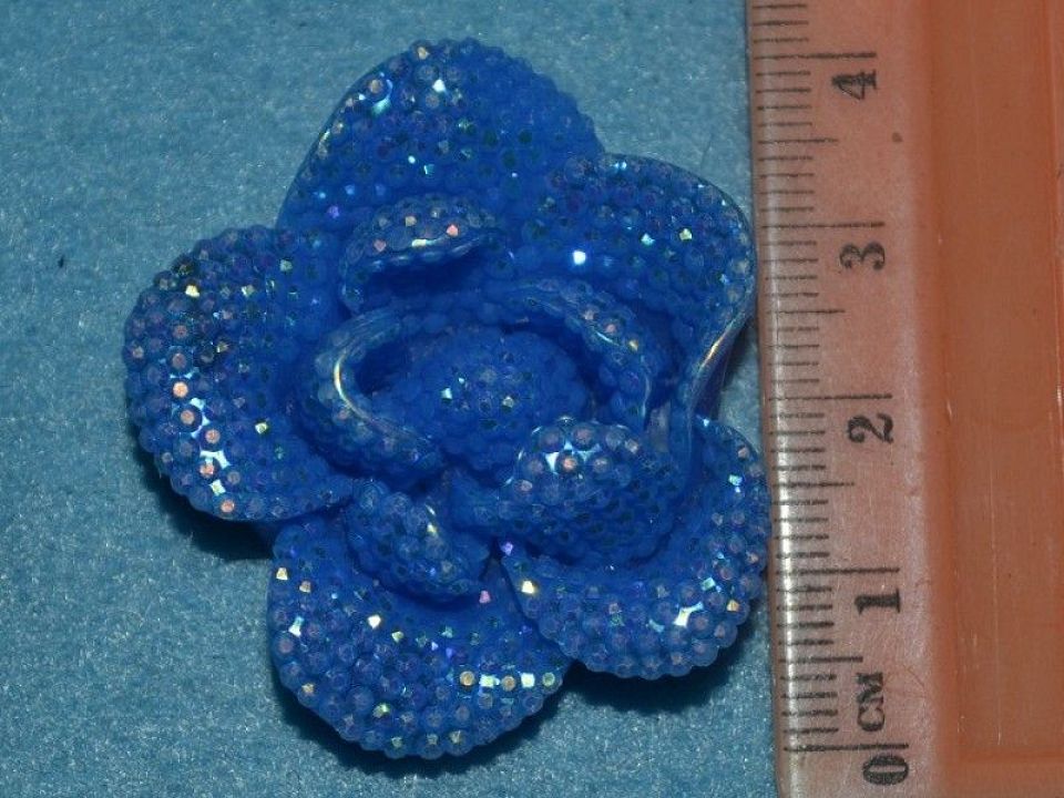 Пластиковий кабошон вигляді троянди, усипаний каменями має плоске (рівне) підстава. Розмір троянди 4см, підстава 2.5см. Використовується для прикрас бантів, шпильок і інших різних виробів