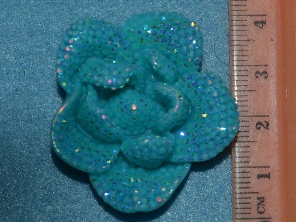 Пластиковий кабошон вигляді троянди, усипаний каменями має плоске (рівне) підстава. Розмір троянди 4см, підстава 2.5см. Використовується для прикрас бантів, шпильок і інших різних виробів