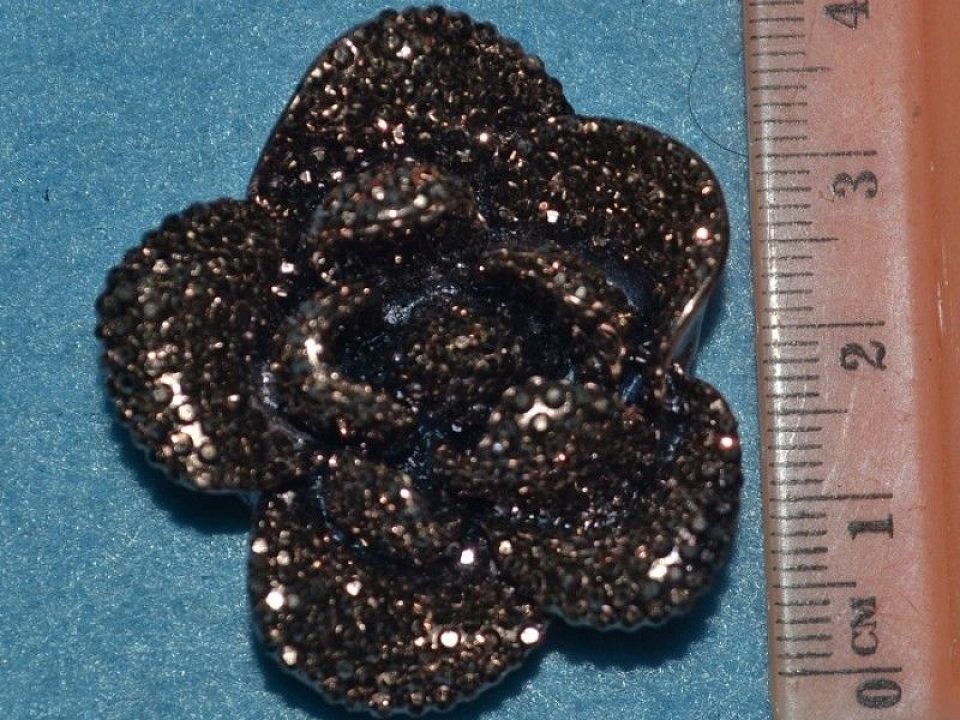 Пластиковий кабошон вигляді троянди, усипаний каменями має плоске (рівне) підстава. Розмір троянди 4см, підстава 2.5см. Використовується для прикрас бантів, шпильок і інших різних виробів