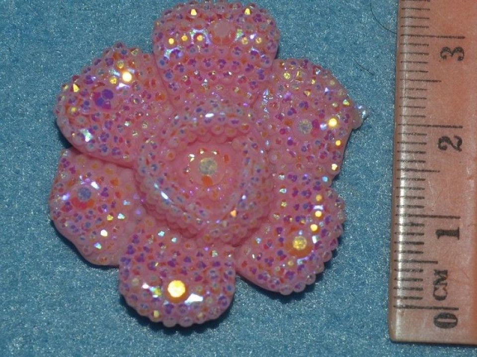 Пластиковий кабошон вигляді троянди, усипаний каменями має плоске (рівне) підстава. Розмір троянди 3см, підстава 2см. Використовується для прикрас бантів, шпильок і інших різних виробів.