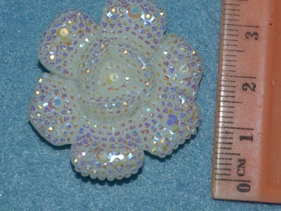 Пластиковий кабошон вигляді троянди, усипаний каменями має плоске (рівне) підстава. Розмір троянди 3см, підстава 2см. Використовується для прикрас бантів, шпильок і інших різних виробів.