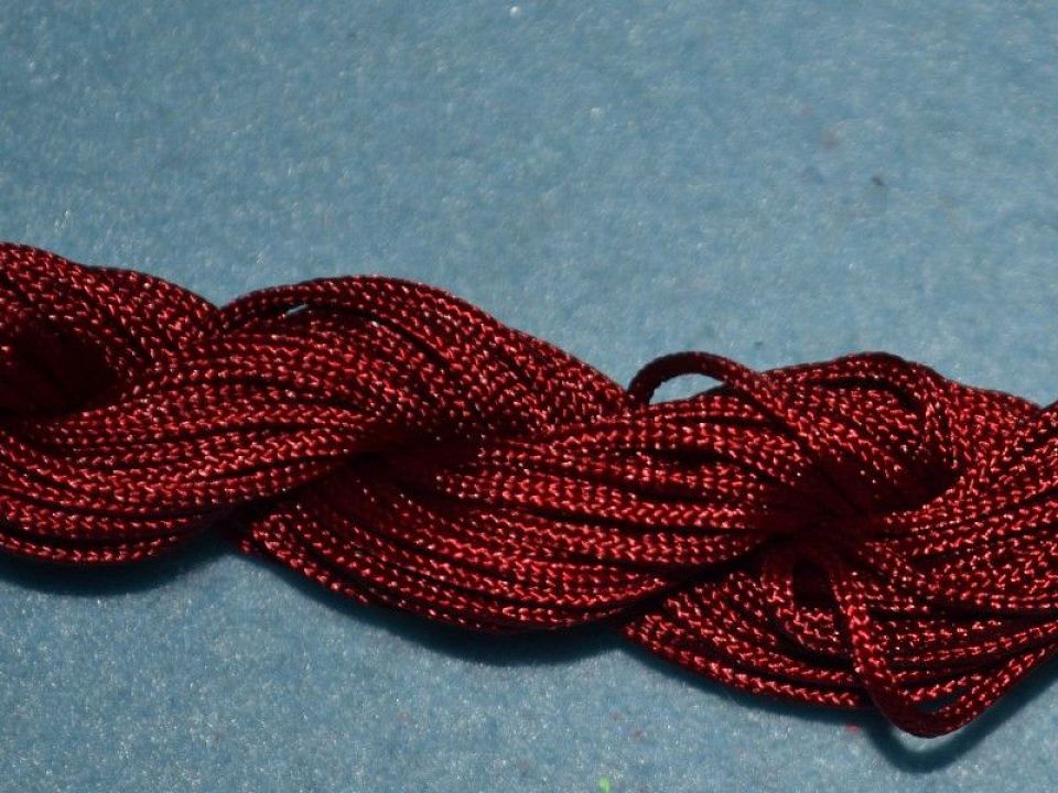 Шнур синтетичний (капронову ще називають нейлоновим), товщина -2мм. Має високу міцність і стійкість до тертя. Плавиться якщо його підпалити .Такий шнурок часто використовують для плетіння браслетів Шамбала, і інших прикрас в техніці макраме. Ціна за моток-15 метрів.
