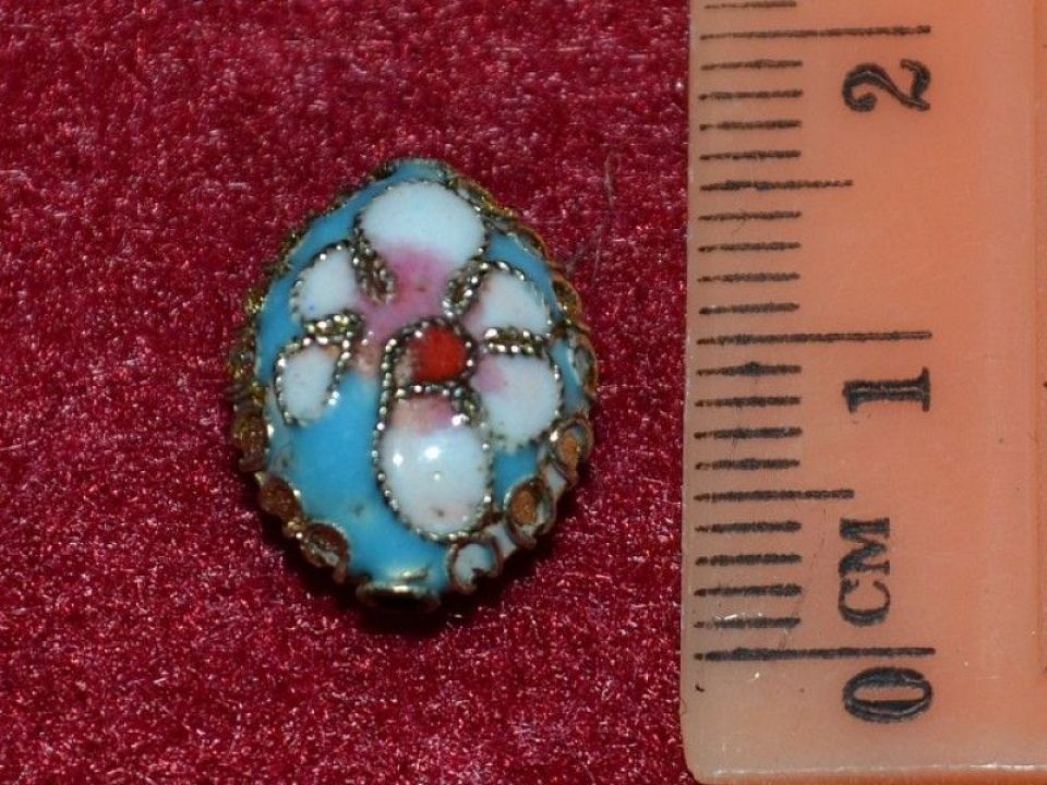 Намистина металева виготовлена в техніці Клуазоне з елементами емалі. Розмір: 1 * 1.5см Ціна за 1 шт
