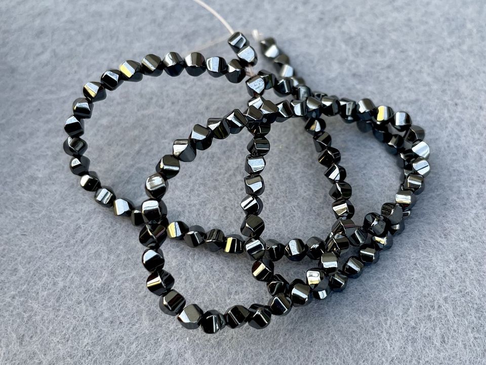 Гематит-натуральний, гранований. Розмір намистини: 4*4мм. Кількість намистин на нитці: 110 (+-2шт). Отвір: 1мм. Ціна за нитку (без замку). Довжина нитки: 40 см