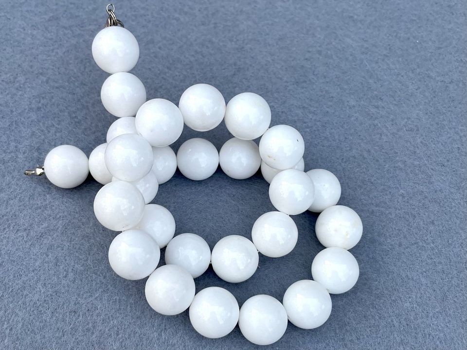 Агат-білий-пресований, гладкий. Розмір намистини: 16мм.