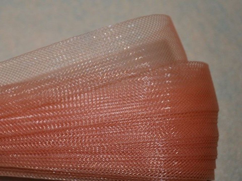 Регилин (кринолін) - гнучка стрічка, застосовується для надання та підтримки форми одягу в сукнях, театральних костюмах, купальних костюмах. Регилин також застосовується для пошиття м'яких іграшок, сумок, капелюхів та інших виробів з текстилю, в яких необхідна фіксація форми. Ширина 2см Довжина 23 метри Колір персиковий
