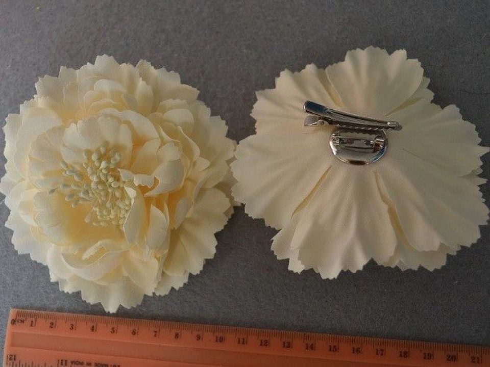 Квітка 2 в 1, з тканини-прикрашений тичинками. Діаметр ~ 10-12см. Може використовуватися як шпилька, так і як брошку. Ціна за 1 шт