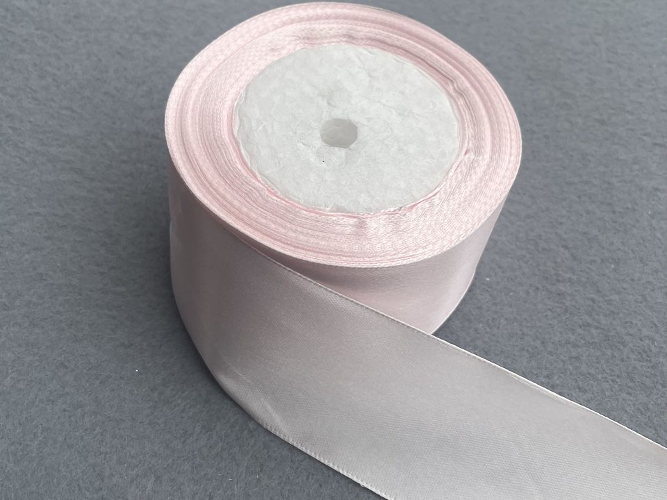 Стрічка атласна-ширина 5 см. У мотку ~23 метри. Колір-світло світло рожевий. Застосовують для прикраси, обробки одягу, вишивання стрічками, плетіння стрічками і т.д. Ціна вказана за 1 моток. Виробництво – Китай.
