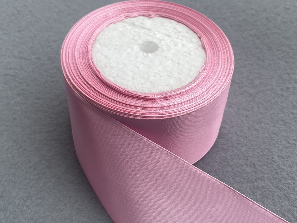 Стрічка атласна-ширина 5 см. У мотку ~23 метри. Колір-рожевий. Застосовують для прикраси, обробки одягу, вишивання стрічками, плетіння стрічками і т.д. Ціна вказана за 1 моток. Виробництво – Китай.