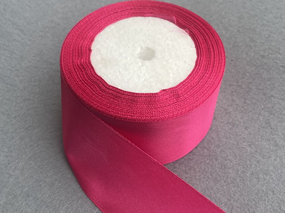 Стрічка атласна-ширина 5 см. У мотку ~23 метри. Колір-малиновий. Застосовують для прикраси, обробки одягу, вишивання стрічками, плетіння стрічками і т.д. Ціна вказана за 1 моток. Виробництво – Китай.