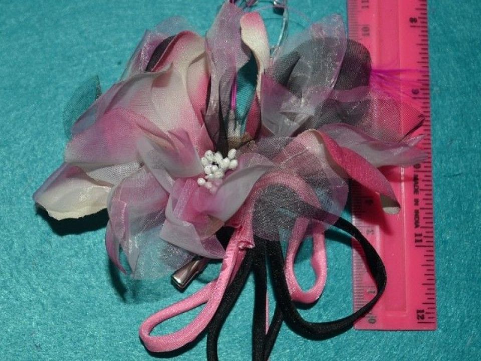 Квітка декоративна 12-14см, з основою 2 в 1-використовується як брошка і шпилька. Прикрашена тичинками і стрічками. Ціна за 1 шт