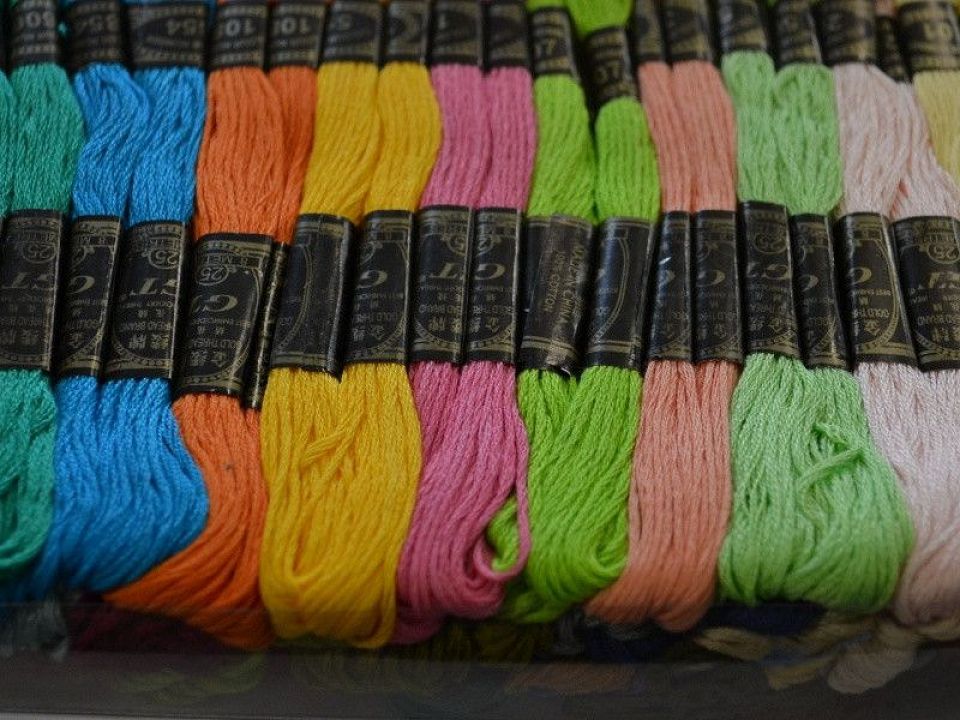 Нитки для вишивки Муліне 100 мотків по 8 метрів Кольори - асорті, кожного кольору по кілька мотків. Використовується в різних техніках вишивання: хрестиком, гладдю та інших.