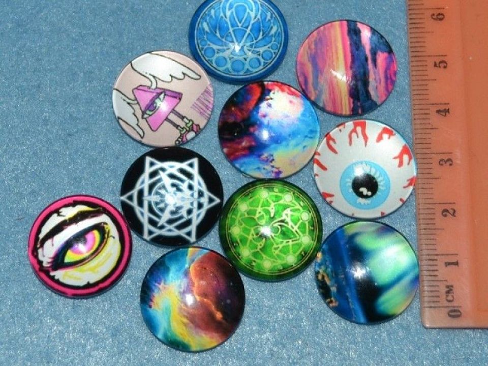 Камея (кабошон) - лінза скляна 20мм з різними зображеннями, упаковка 10 шт. Форма коло з плоским підставою.