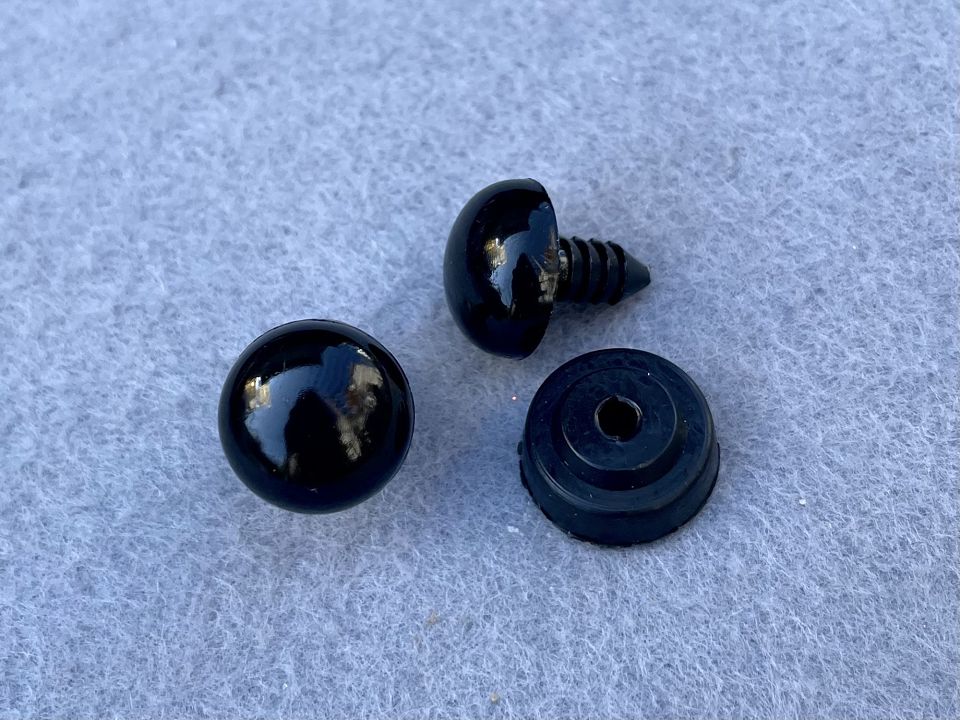 Очі для іграшок. Чорні на ніжці, діаметр 16 мм + безпечне кріплення. Можна використовувати і для носика. Ціна за упаковку - 20пар.