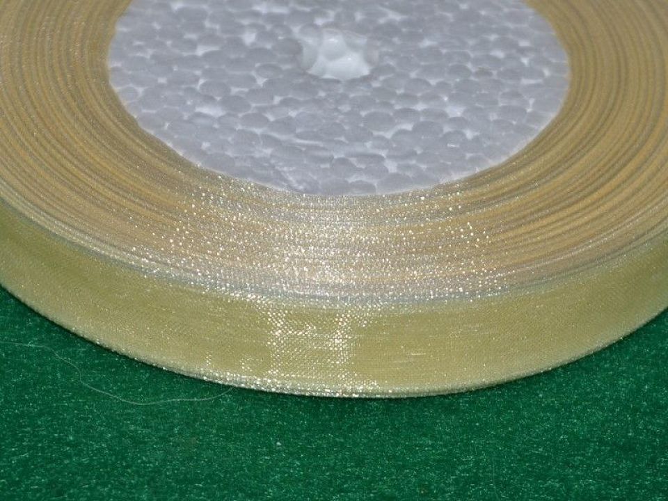 Стрічка з органзи, ширина-1.2см. В мотку-46 метрів. Використовуються при будь-яких видах декорування (при виготовленні сувенірів, ляльок, шпильок, гумок, обручів; при упаковці подарунків) .Ленти з органзи вдають із себе тонкі, трохи жорстким і напівпрозорі тканини смужки.