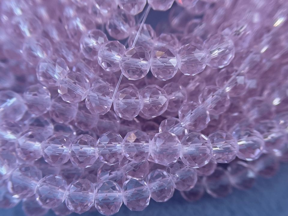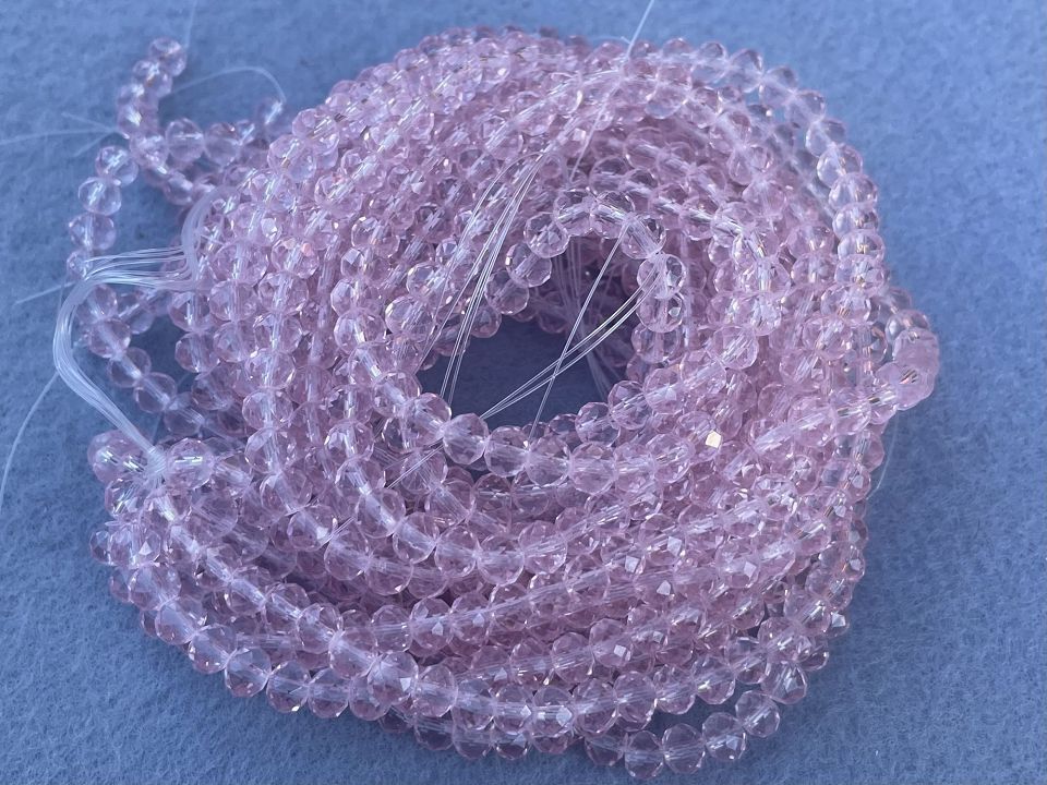 Кришталеві намистини, грановані. Розмір: 6*5мм, отвір: 1мм. Форма: рондель, сфера. У нитці: 90+-3шт. Ціна за 1 нитку.