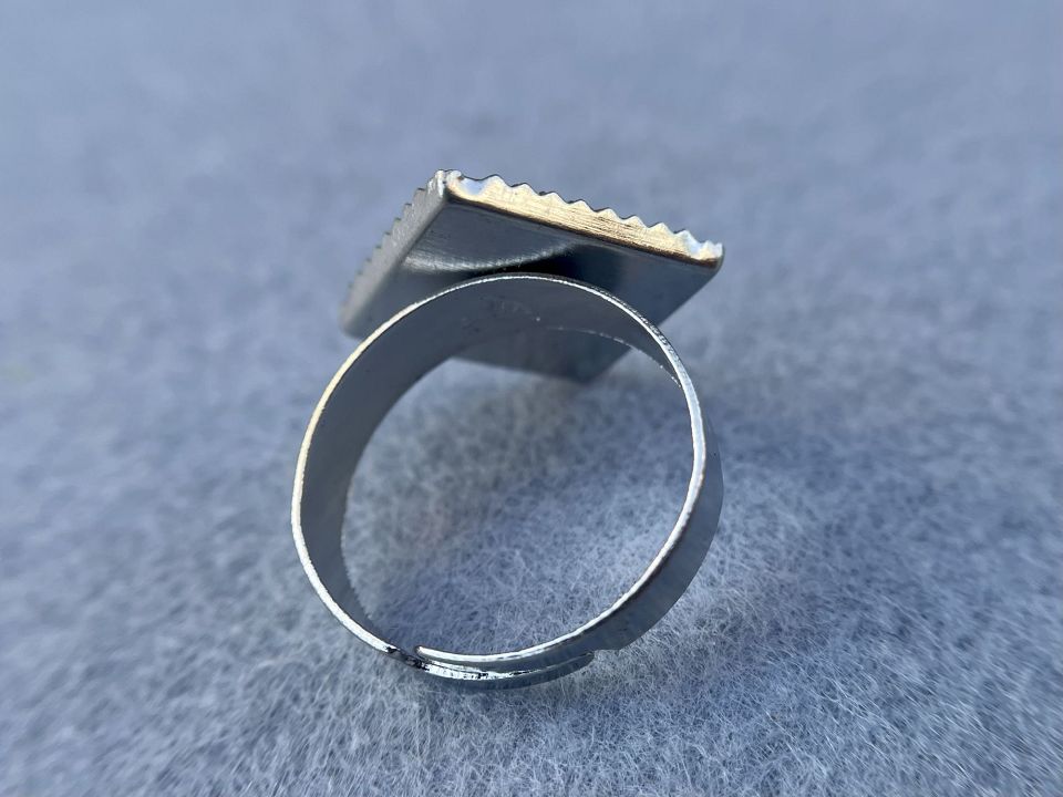 Основа для кільця із металевого сплаву, з бортиком. Основа-15*15мм. Діаметр кільця: 17мм і розширюється на пару розмірів. Колір: сталь, ціна за 1шт.