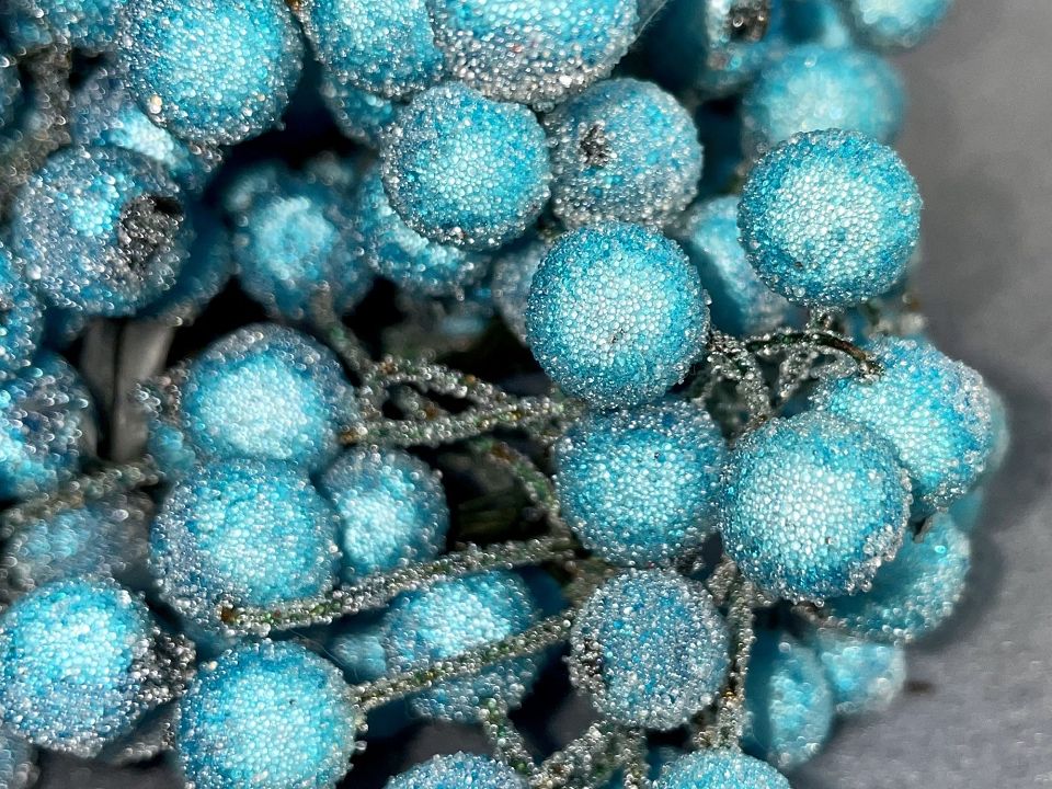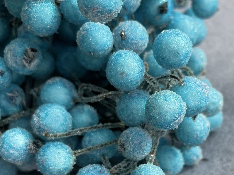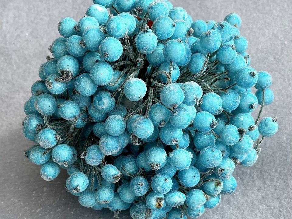 Цукрові ягідки калини. Довжина дроту 12 см, діаметр ягідки 12 мм. Довжина гілочки з ягідками 15см. У наборі 200 дротів, на кожній по 2 ягідки, всього 400 ягідок. Ягідки зроблені з пінопласту кульки покритого шаром м'якого вінілу і кришталевої присипкою, що імітує лід. Тичинки використовуються при декоруванні обідків і різних шпильок а так само в різних підробки.